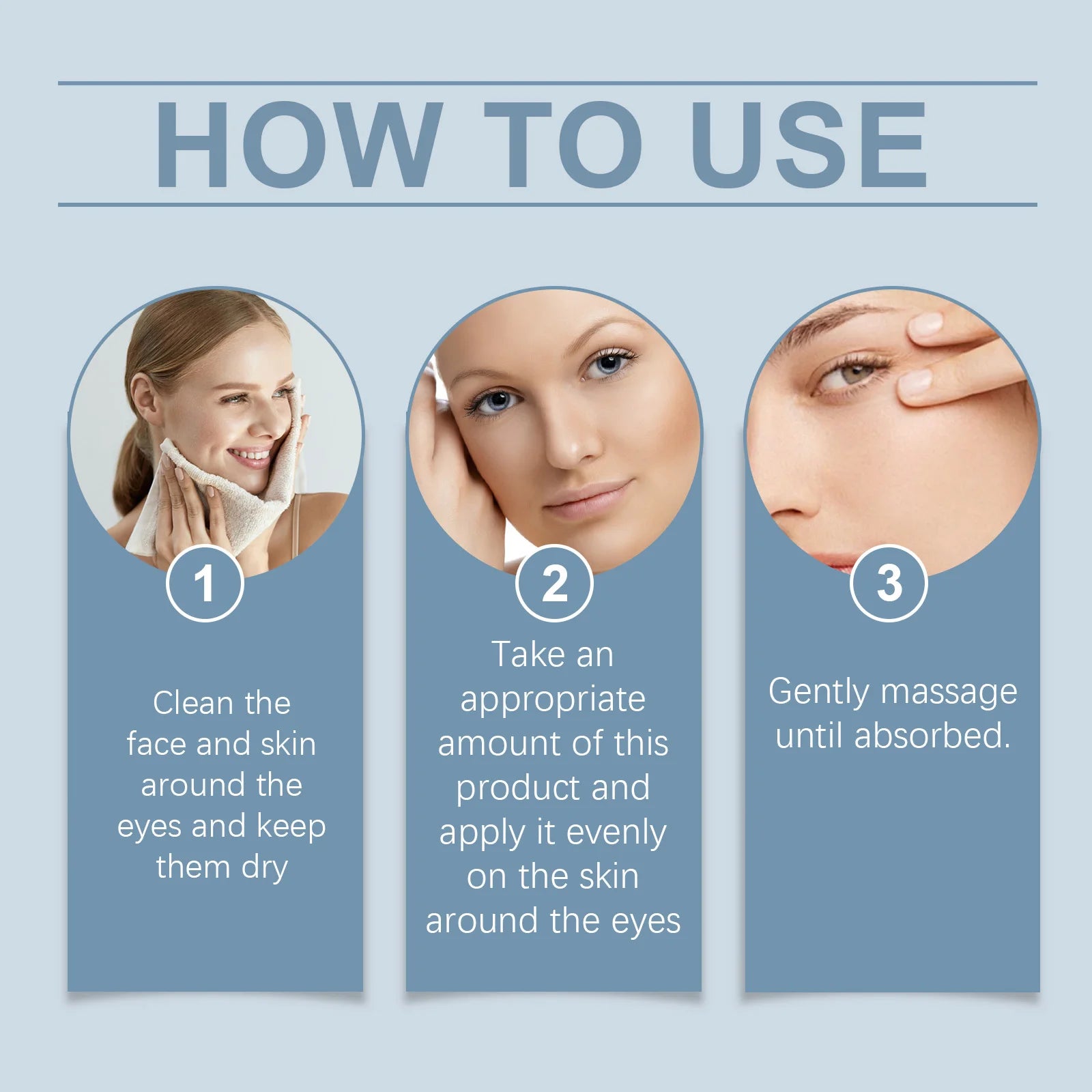 2. Take an appropriate amount of this product and apply it evenly on the skin around the eyes
