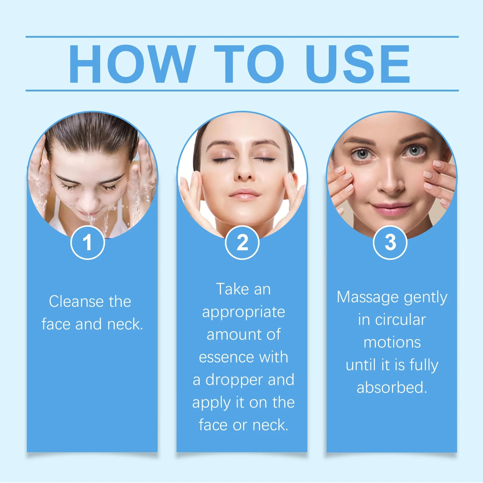 Our peptide facial serum contains arginine/lysine peptides, acetyl hexapeptide-8, and hyaluronic acid. It can reduce wrinkle formation and improve skin smoothness. Deeply moisturizes, locks in moisture, keeps skin soft and plump; evens out skin tone, improves skin radiance, and enhances barrier function. It is easy to use: 1. Cleanse face and neck. 2. Use a dropper to take an appropriate amount of serum and apply it to face or neck. 3. Massage gently in circular motions until fully absorbed. Reverse the skin clock and exude a youthful glow. The signs of aging gradually fade and fine lines gradually disappear.