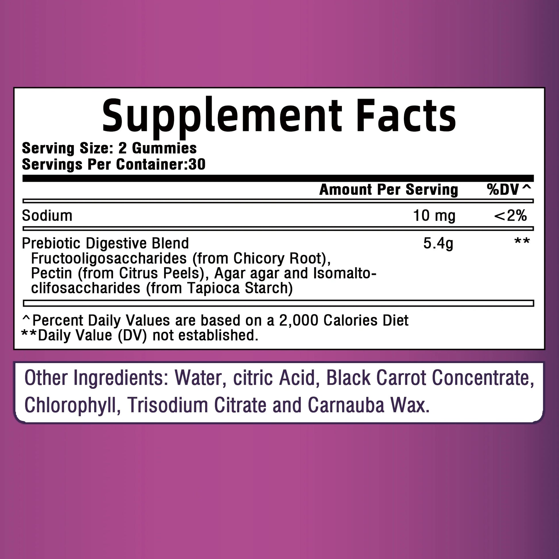 Sugar-Free Prebiotic Fiber Gummies - with Chicory Roots - Promotes Digestive and Intestinal Health - 60 Gummies