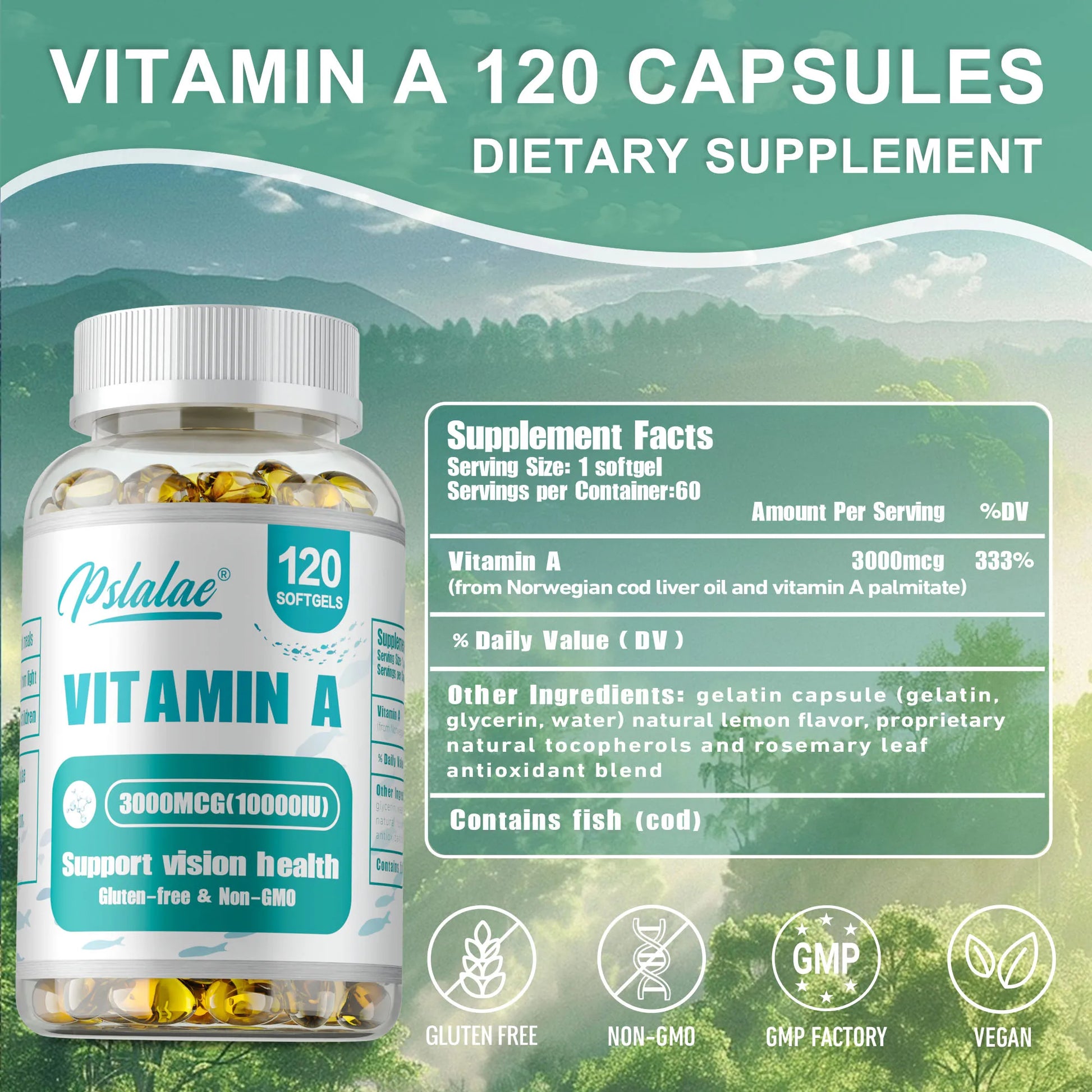 POWERFUL VITAMIN A: Pure Encapsulated Vitamin A provides 3,000 mcg of Vitamin A from Norwegian cod liver oil and palmitate to support cellular health, immune function and healthy vision.